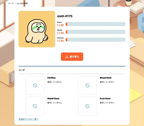 現在はまだ未実装のコンテンツではありますが、これから「出社する」といった行動ができるようになることで、slothのステータスを上げたり、報酬を獲得することが可能です。