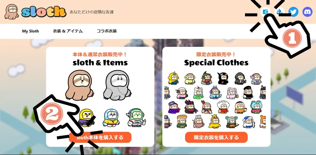 | 販売価格 | sloth本体+衣装セット/0.021ETH